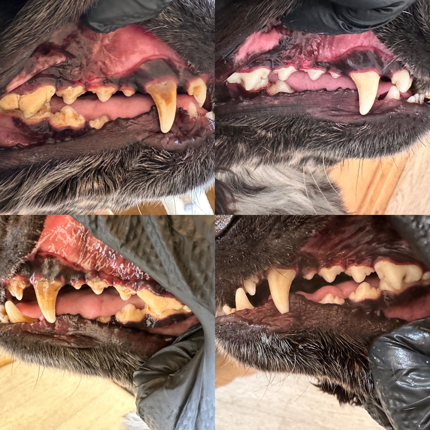 Leaving a thick plaque build up on their teeth means potentially exposing the tooth roots to bacteria due to the gumline receeding.